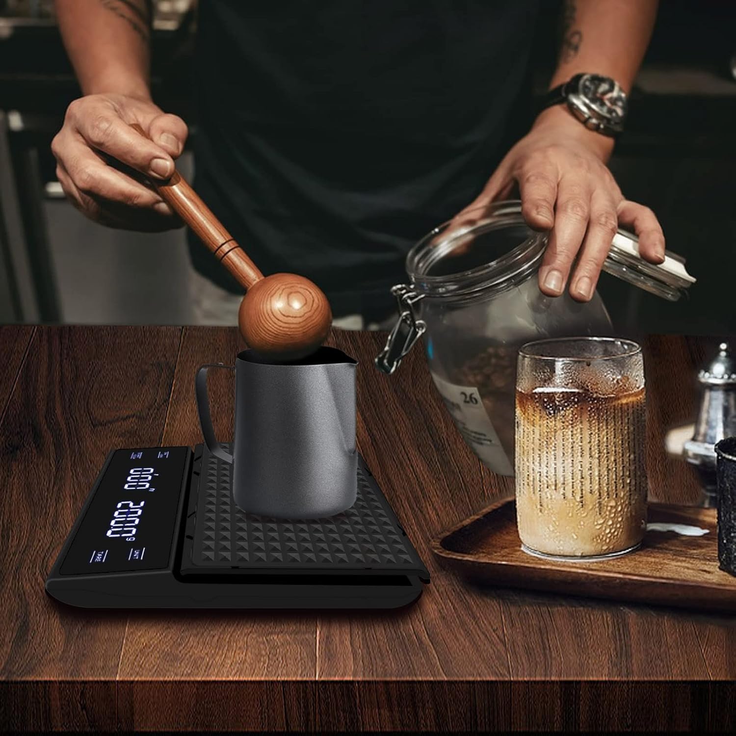 ترازو دیجیتال لمسی طرح هریو | دقت بالا برای دمآوری حرفهای قهوه